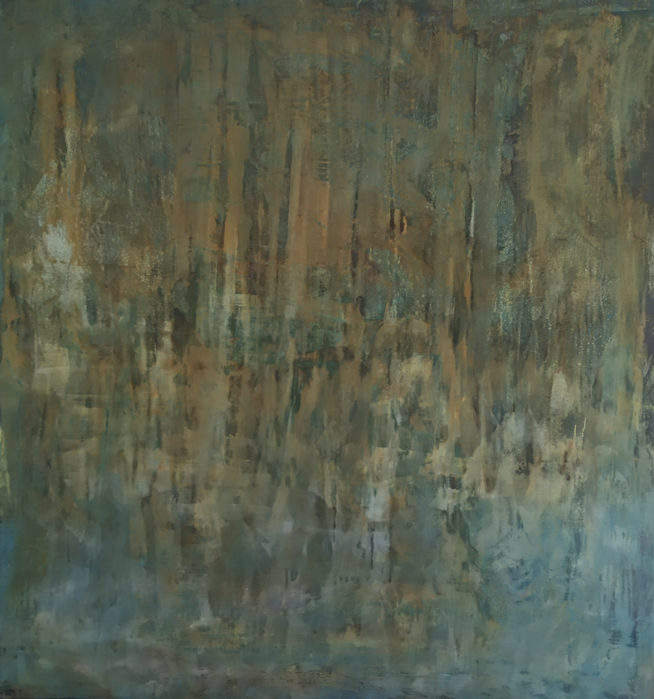 Estupenda pintura abstracta utilizando diferentes tipos de pinturas de gran calidad sobre chapón marino de cinco láminas.