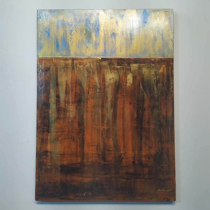 Estupenda pintura abstracta utilizando diferentes tipos de pinturas de gran calidad sobre chapón marino de cinco láminas.