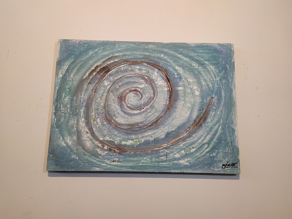 Estupenda pintura abstracta utilizando diferentes tipos de pinturas de gran calidad sobre chapón marino de cinco láminas.