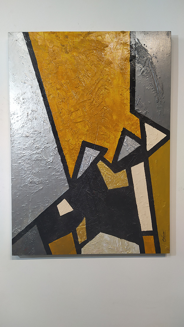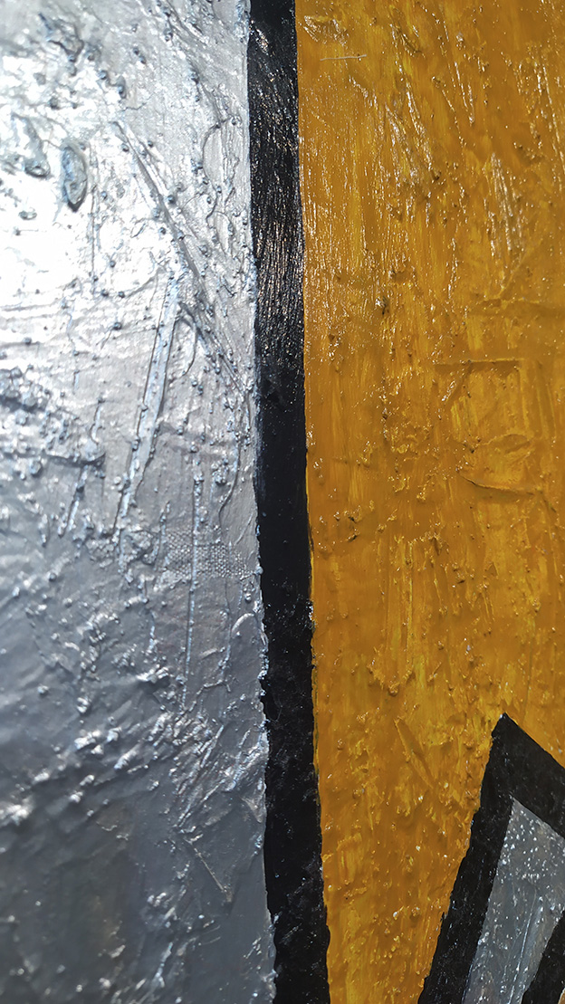 Tiene un premarco de madera trasero para poder colgar, los marcos son muy personales y dependen mucho de la decoración de cada lugar. Esta pintura abstracta moderna está realizada a mano desde la elaboración del soporte hasta la terminación en laca de alta calidad.