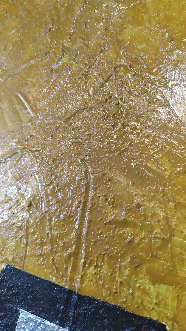 Estupenda pintura abstracta utilizando diferentes tipos de pinturas de gran calidad sobre chapón marino de cinco láminas.