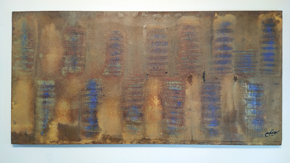 Estupenda pintura abstracta utilizando diferentes tipos de pinturas de gran calidad sobre chapón marino de cinco láminas.