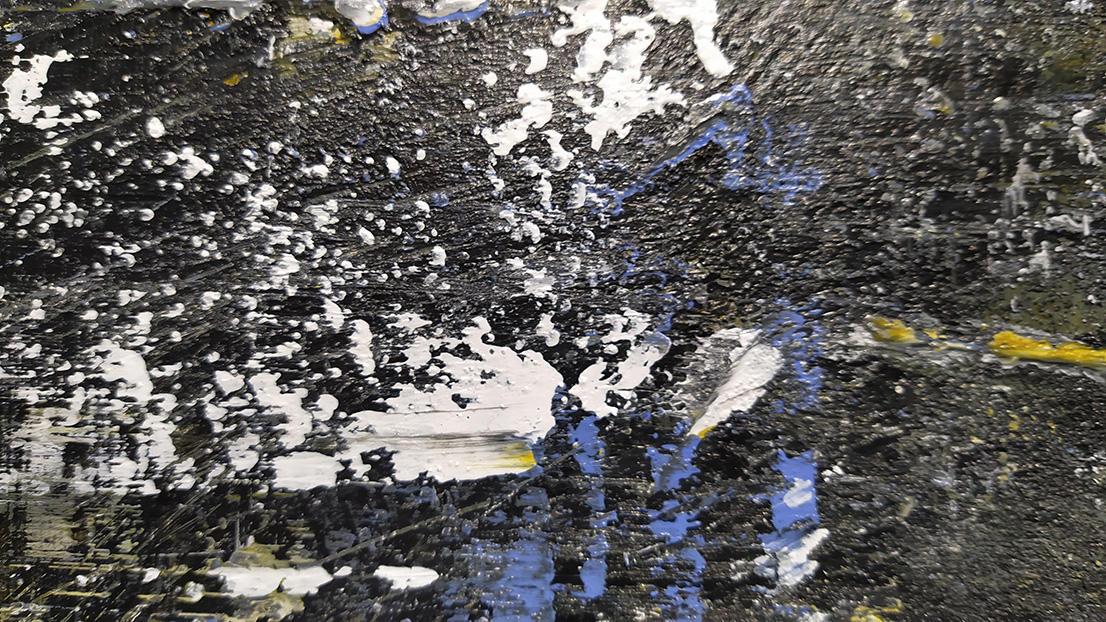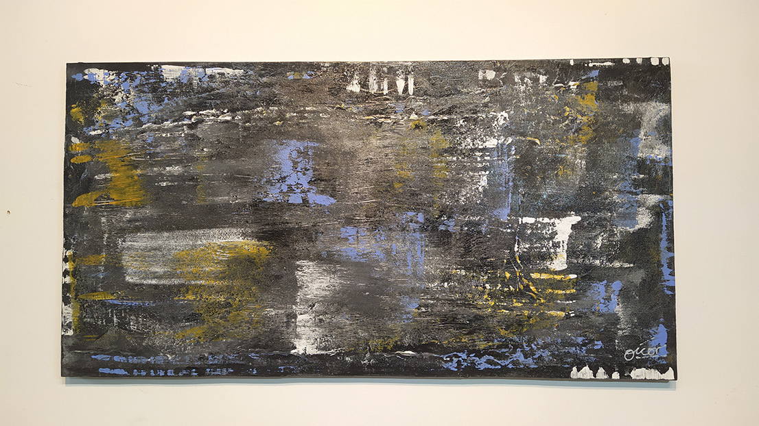 Estupenda pintura abstracta utilizando diferentes tipos de pinturas de gran calidad sobre chapón marino de cinco láminas.